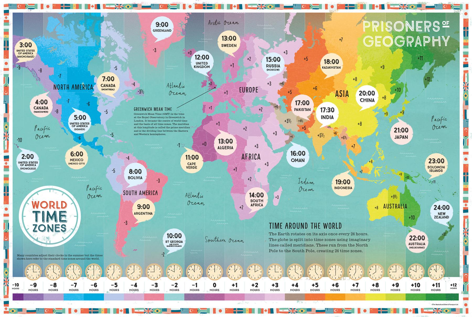 A4 World Time Zones map self adhesive Cosmographics Ltd